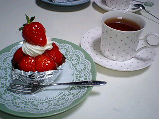 ↑L祝いのケーキvv紅茶も今日の頂き物をさっそくvv